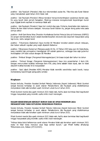 positive - Ida Fauziyah (Menaker) Atinya menaker hanya mementingkan usulannya Apindo saja.