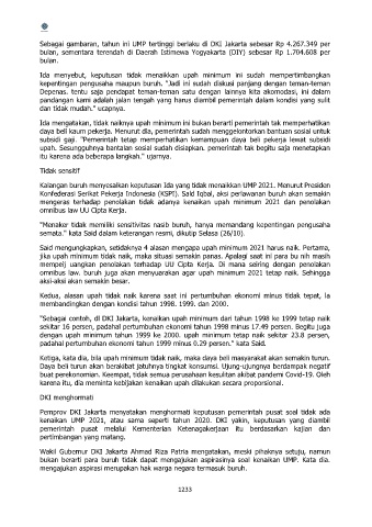 kenaikan UMP 2021, atau sama seperti tahun 2020. DKI yakin, keputusan yang diambil