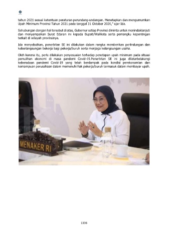 Upah Minimum Provinsi Tahun 2021 pada tanggal 31 Oktober 2020," ujar Ida.