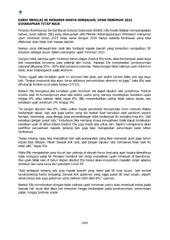 KSBSI MENILAI SE MENAKER HANYA HIMBAUAN, UPAH MINIMUM 2021