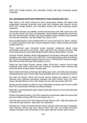 (UMP) 2021. Kendati demikian, Riza memastikan Pemprov DKI tetap menampung aspirasi