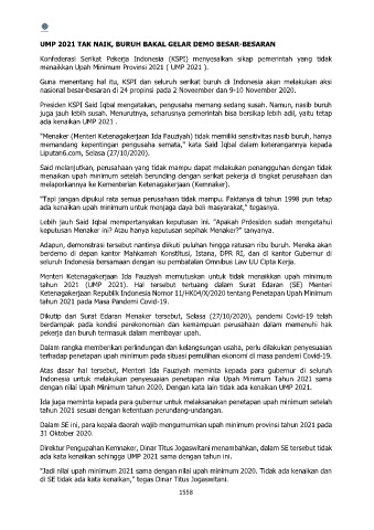 menaikkan Upah Minimum Provinsi 2021 ( UMP 2021 ).