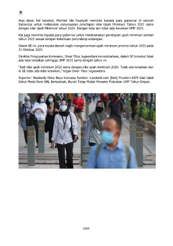 "Jadi nilai upah minimum 2021 sama dengan nilai upah minimum 2020. Tidak ada kenaikan dan
