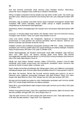 terhadap penetapan upah minimum pada situasi pemulihan ekonomi di masa pandemi Covid-19.