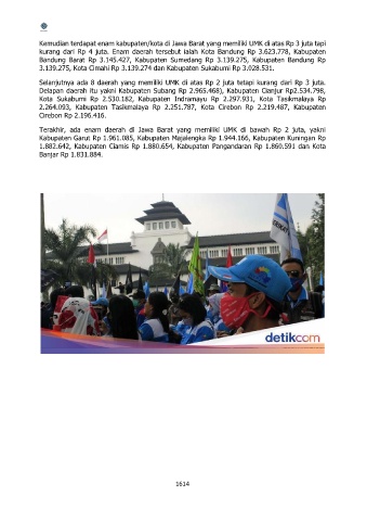 Kabupaten Garut Rp 1.961.085, Kabupaten Majalengka Rp 1.944.166, Kabupaten Kuningan Rp