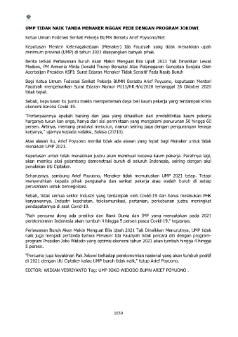 EDITOR: WIDIAN VEBRIYANTO Tag: UMP JOKO WIDODO BUMN ARIEF POYUONO .