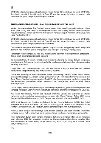 TANGGAPAN DPRD DKI SOAL UPAH BURUH TAHUN 2021 TAK NAIK