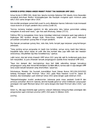 KOMISI B DPRD IMBAU ANIES MANUT PUSAT TAK NAIKKAN UMP 2021