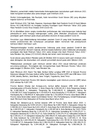 penetapan nilai Upah Minimum Tahun 2021 sama dengan nilai Upah Minimum Tahun 2020,"