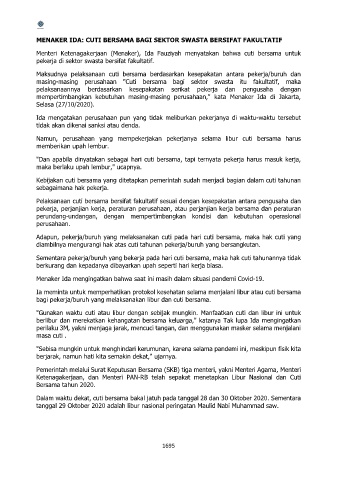 MENAKER IDA: CUTI BERSAMA BAGI SEKTOR SWASTA BERSIFAT FAKULTATIF
