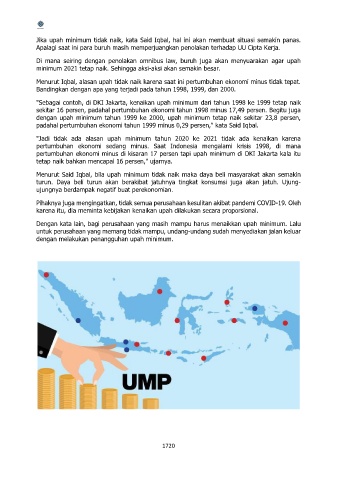 "Jadi tidak ada alasan upah minimum tahun 2020 ke 2021 tidak ada kenaikan karena