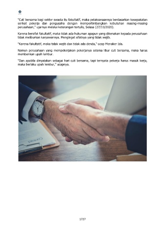 "Cuti bersama bagi sektor swasta itu fakultatif, maka pelaksanaannya berdasarkan kesepakatan