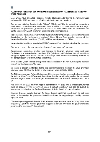 "Ida Fauziyah is not the manpower minister but the minister of Apindo [the Indonesian Employers