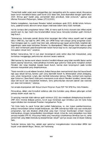tahun 1998 lalu, tapi saat itu UMP, UMK, dan UMSK tetap naik sebagai jaring pengaman sosial.