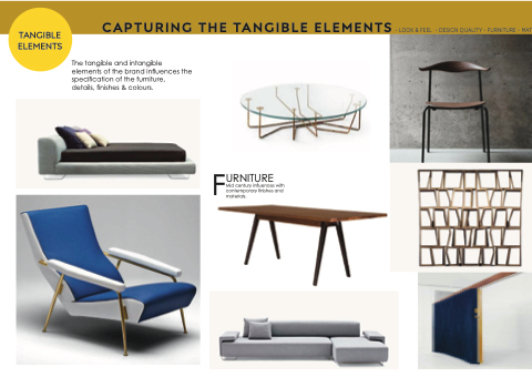 CAPTURING THE TANGIBLE ELEMENTS - - - - look & Feel - - - - design quality - - - - FURNITURE - - - - MATERIALS - - - - - - - - The tangible tangible and and intangible elements