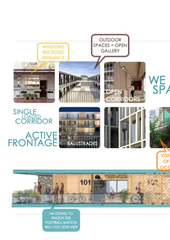 WINDOWS RECESSED ENTRANCE OUTDOOR SPACES = OPEN GALLERY WE SINGLE LOADED CORRIDOR ACTIVE FRONTAGE BALUSTRADES OPEN CORRIDORS SPACE VISIBLE OF OCCUPATION I'M GOING TO WATCH THE FOOTBALL MATCH! WILL YOU JOIN ME?