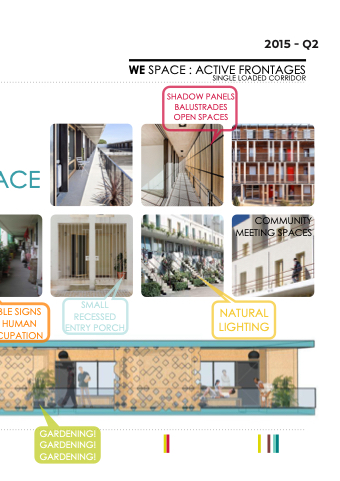 2015 - q2 WE SPACE : ACTIVE FRONTAGES SINGLE LOADED CORRIDOR SHADOW PANELS BALUSTRADES OPEN SPACES COMMUNITY MEETING SPACES NATURAL LIGHTING SIGNS HUMAN SMALL RECESSED ENTRY PORCH GARDENING! GARDENING! GARDENING!