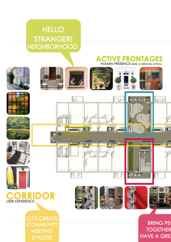 HELLO STRANGER! NEIGHBORHOOD CORRIDOR USER EXPERIENCE LET'S CREATE COMMUNITY MEETING SPACES! ACTIVE FRONTAGES HUMAN PRESENCE KERB (CORRIDOR) APPEAL BRING PEOPLE TOGETHER HAVE A A A GREAT