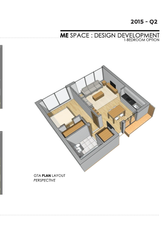 2015 - q2 ME ME SPACE : DESIGN DEVELOPMENT 1-BEDROOM OPTION GTA PLAN LAYOUT PERSPECTIVE Geraghty Taylor ARCHI TEC TS 20