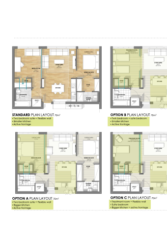 STANDARD PLAN LAYOUT 70m2 ▪ Two bedroom suite + Flexible wall