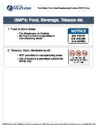 GMP’s: Food, Beverage, Tobacco etc.