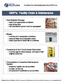 Food Safety & Basic Good Manufacturing Practices (GMP) Training