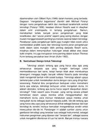 teknologi (Polanyi 1958); keadaan diskusi filosofis saat ini disajikan
