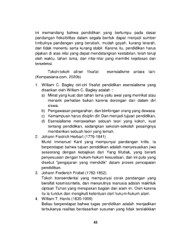 1. William C. Bagley ciri-ciri filsafat pendidikan esensialisme yang