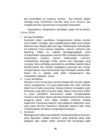 Esensialis dalam pendidikan mengemukakan bahwa sekolah