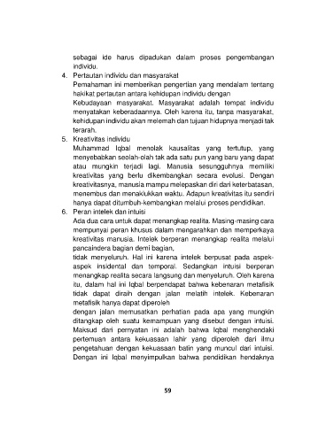 Dengan ini Iqbal menyimpulkan bahwa pendidikan hendaknya