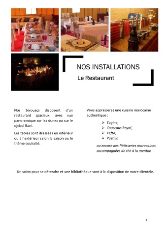 Nos bivouacs disposent d’un Vous apprécierez une cuisine marocaine