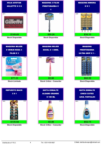 Distribuidora P.R.O. 4 Tel.: 0351-458-8927 E-Mail: distribuidorapro@hotmail.com