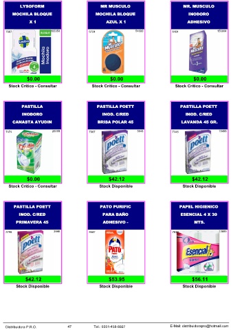 Distribuidora P.R.O. 47 Tel.: 0351-458-8927 E-Mail: distribuidorapro@hotmail.com