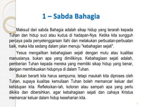 Maksud dari sabda Bahagia adalah sikap hidup yang terarah kepada