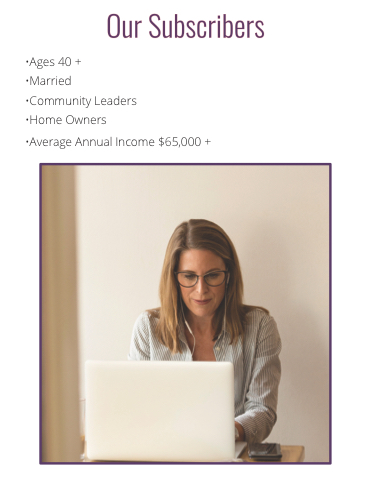 Our Subscribers •Ages 40 + •Married •Community Leaders •Home Owners •Average Annual Income $65,000 +