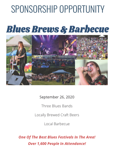 SPONSORSHIP OPPORTUNITY September 26, 2020 Three Blues Bands Locally Brewed Craft Beers Local Barbecue One Of The Best Blues Festivals In The Area! Over 1,600 People In Attendance!