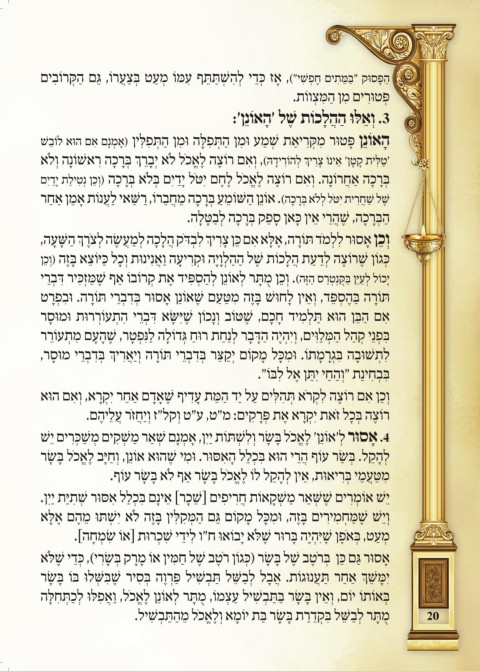 ה ָּל ִ ח ְּ ת ַ כ ְ ל ּוּל ִ פ ֲ א ַ ו ,לֹכ ֱ א ֶ ל ןֵנֹוא ְ ל ר ָּ ת ֻ מ ,ֹומ ְ צ ַ ע לי ִ ׁש ְ ב ַּ ת ַּב ר ָׂש ָּב ןי ֵ א ְ ו ,םֹוי ֹותֹוא ְּב