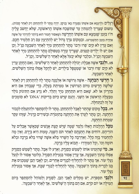 ןִי ַ ד ֲ ע ן ָ ת ָ ח ֶ ה ם ִ א ְ ו .'םי ִ ׁשֹל ְ ׁ ּ ש' ַ ה ר ַ ח ַ א ְ ל ן ֵּ ת ַ ח ְ ת ִ ה ְ ל ה ָ לֹוכְי ;ה ָ ל ֵ ב ֲ א ה ָ ׁ ּ ש ִ א י ֵּ בַג ְ לּו .18