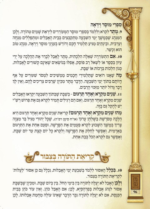 ן ֵ כ ָ ל ְ ו .ה ָ רֹוה ְ ט םִי ַ מ ָ ׁש ת ַ א ְ רִי ְ ל םי ִ ר ְ רֹוע ְּ מ ַ ה ר ָ סּומ י ֵ ר ְ פ ִ ס ְּב דֹמ ְ ל ִ ל ְ ו אֹר ְ ק ִ ל ר ָּ ת ֻ מ .9