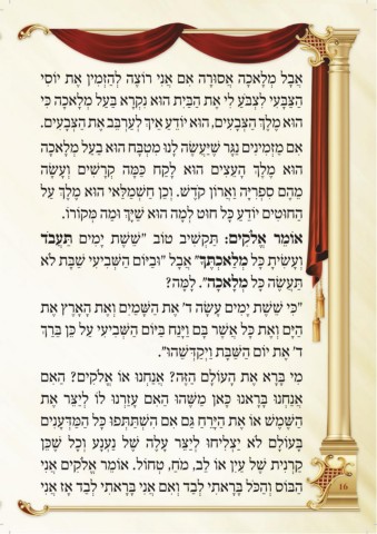 אֹל ת ָּב ַ ׁש י ִ עי ִ ב ְ ׁ ּ ש ַ ה םֹוּי ַ בּו” ל ָ ב ֲ א ״ך ֶּ ת ְ כא ַ ל ְ מ ל ָּכ ָ תי ִׂש ָ ע ְ ו