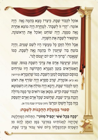 ,תָבּ ַשׁ יֵכ ְרָצ רוּב ֲע יִשִּׁשׁ םוֹי ְבּ וֹתָל ָפּ ְכ ַהְבוּ םִי ַמָשַּׁה 38