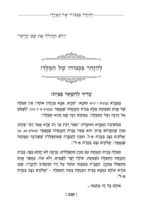 עמשׁל' : (חכ ח 'א םיכלמ) רמאנּשׁ !תסנכּה תיבבּ אלּא תעמשׁנ םדא לשׁ