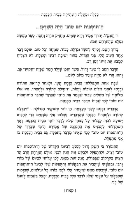 .תסנכּה תיבבּ רבּדמ וֹניאשׁ ימל "בוֹט םוֹי