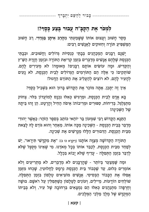 תאצל הּל םרוֹגּ אוּהו רחאמ ,וֹתוֹא הכּמ הניכשּׁה - תסנכּה תיבבּ רבּדמ ְ