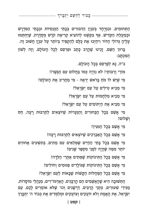 ןוֹשׁל הזו ,םלוֹעה לכל םסרפוּ בתכּ ברהשׁ וּניכז ,םשּׁה וּרבּ ָ