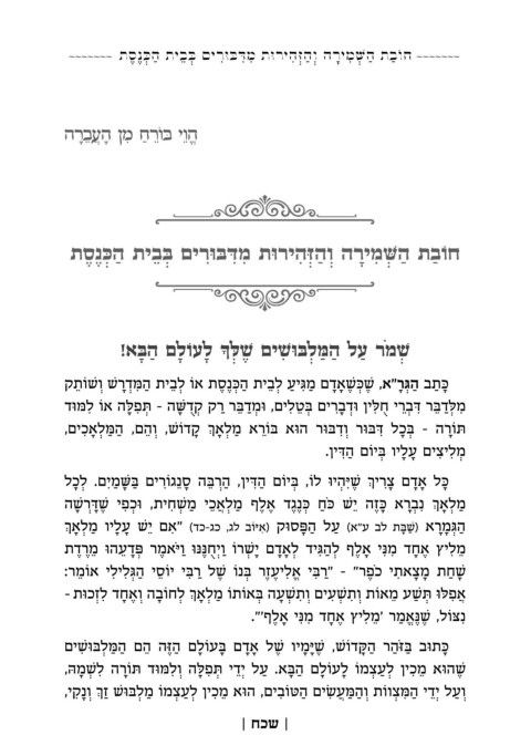 ~~~~~~~ תסנכּה תיבבּ םירוּבּדּמ תוּריהזּהו הרימשּׁה תבוֹח ~~~~~~~