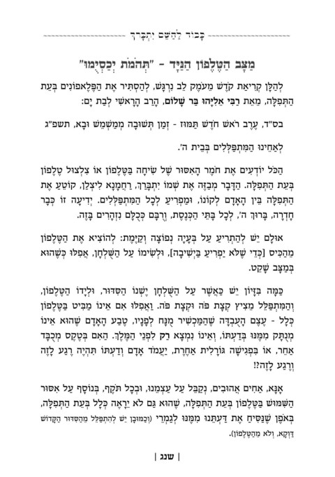 :םי תבל ישׁארה ברה , םוֹלשׁ רבּ וּהיּלא יבּר ַ תאמ ,הלּפתּה ַ