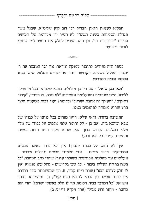 אוה ירהו ,לארשי יקולאב קלח ול ןיא תסנכה תיבב רבדמה לכ" :שודקה