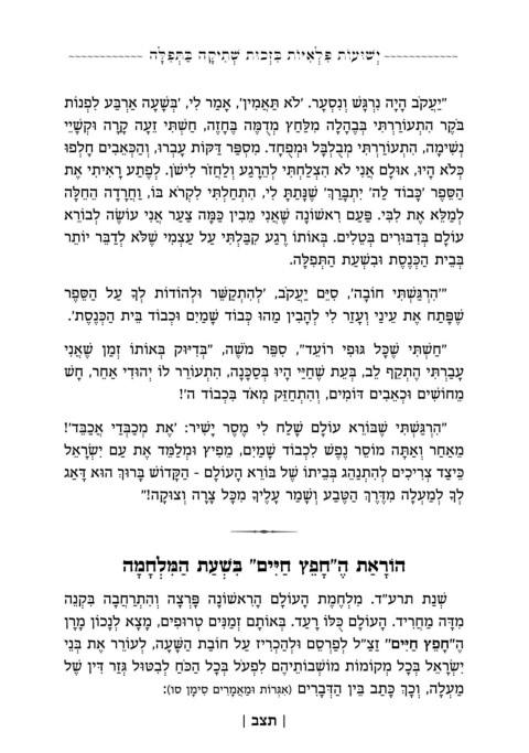 ינבּ תא ררוֹעל ,העשּׁה תבוֹח לע זירכהלוּ םסרפל ל"צז ַ ''םייּח ץפח" ה ֶ