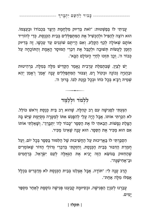 .ללוֹכּ שׁארו תסנכּ תיבּ בר אוּהשׁ ,הלּהק בר םע השׁיגפל יתּעגּה ִ
